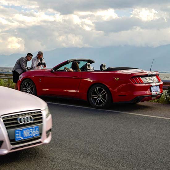 China’s Latest Tourist Craze: Bright Pink Convertibles